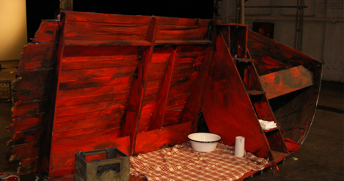 Für das Bühnenbild erhielten wir den Auftrag eine Bootsattrappe zu bauen, die möglichst leicht ist um sie problemlos auf der Bühne bewegen zu können. Sie musste aber auch mehrer Schauspieler aushalten, die in und teils auf dem Boot auftraten.